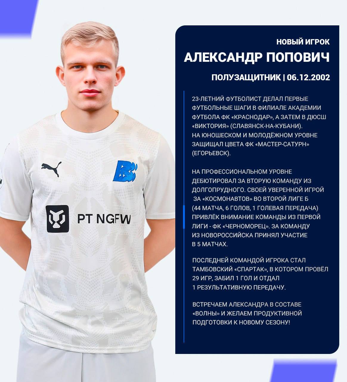 Встречаем Александра в составе «Волны» и желаем продуктивной подготовки к новому сезону!