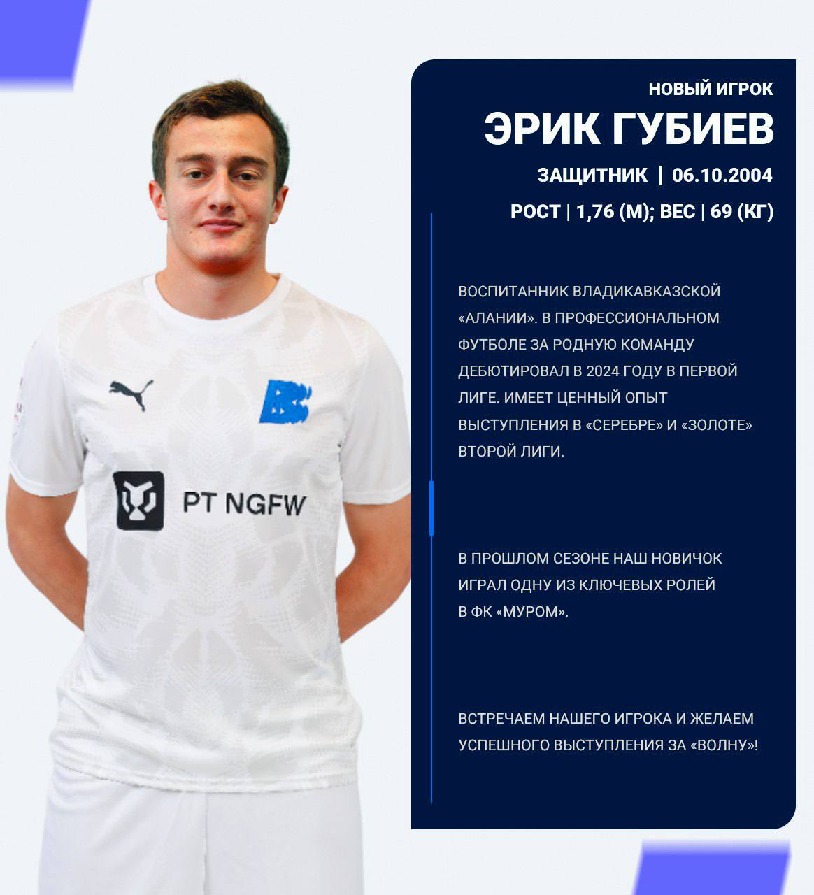 Встречаем нашего игрока и желаем успешного выступления за «Волну»!